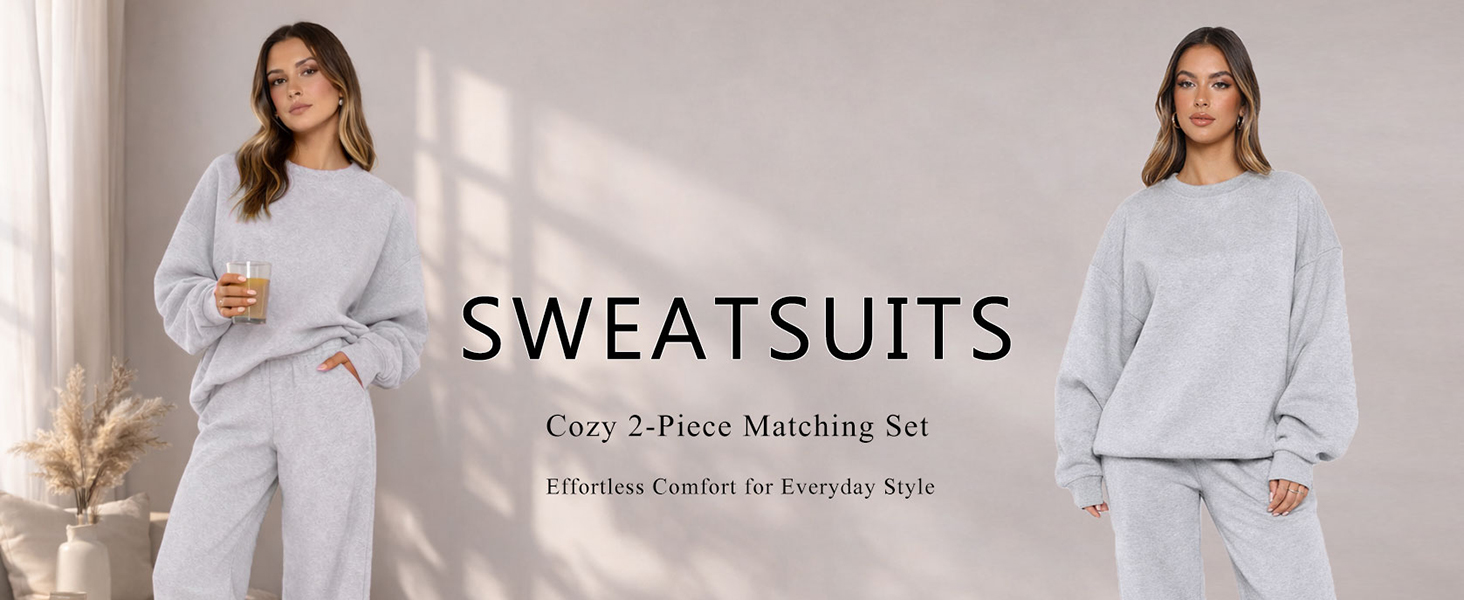 【Relaxed Oversized Fit】Designed with a loose crewneck pullover and wide leg sweatpants, this 2 piece sweatsuit features a relaxed, oversized silhouette that drapes naturally on the body and feels easy to wear without restriction.
