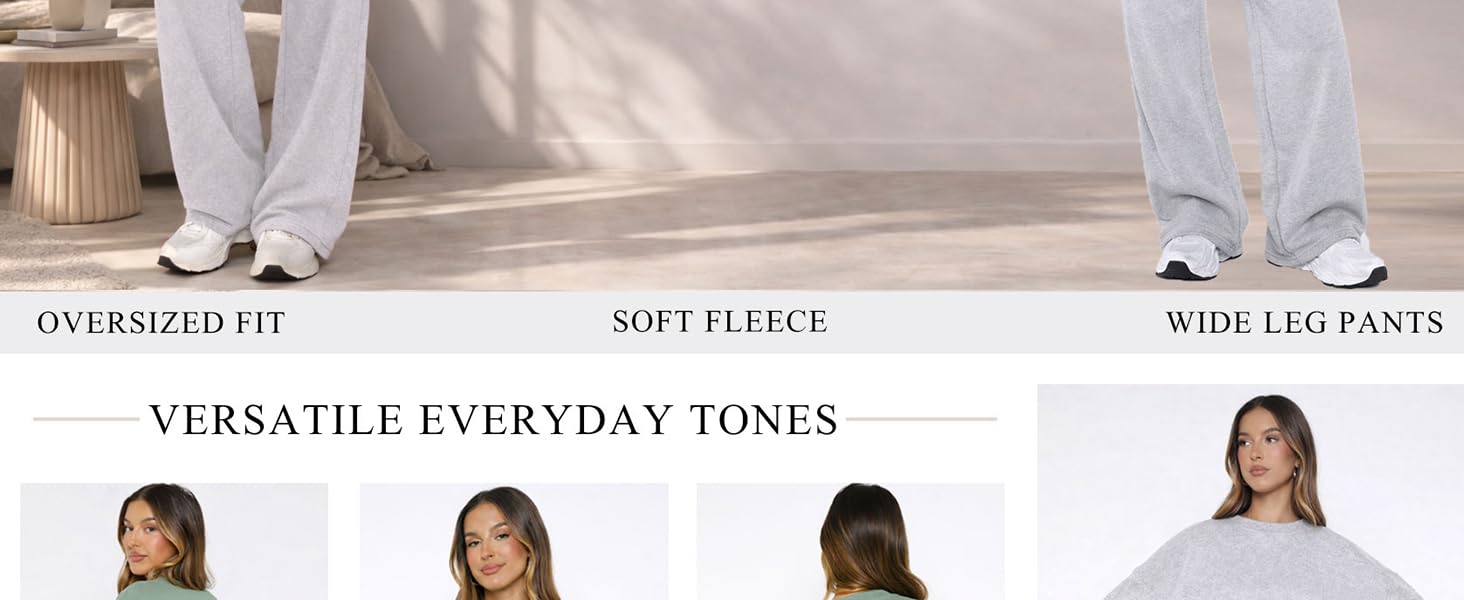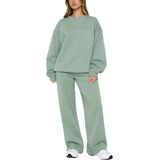 【Clean & Put-Together Look】The long sleeve crewneck sweatshirt pairs with wide leg pants to create a balanced, modern casual outfit. This matching sweatsuit set makes it easy to put together a complete outfit without overthinking.