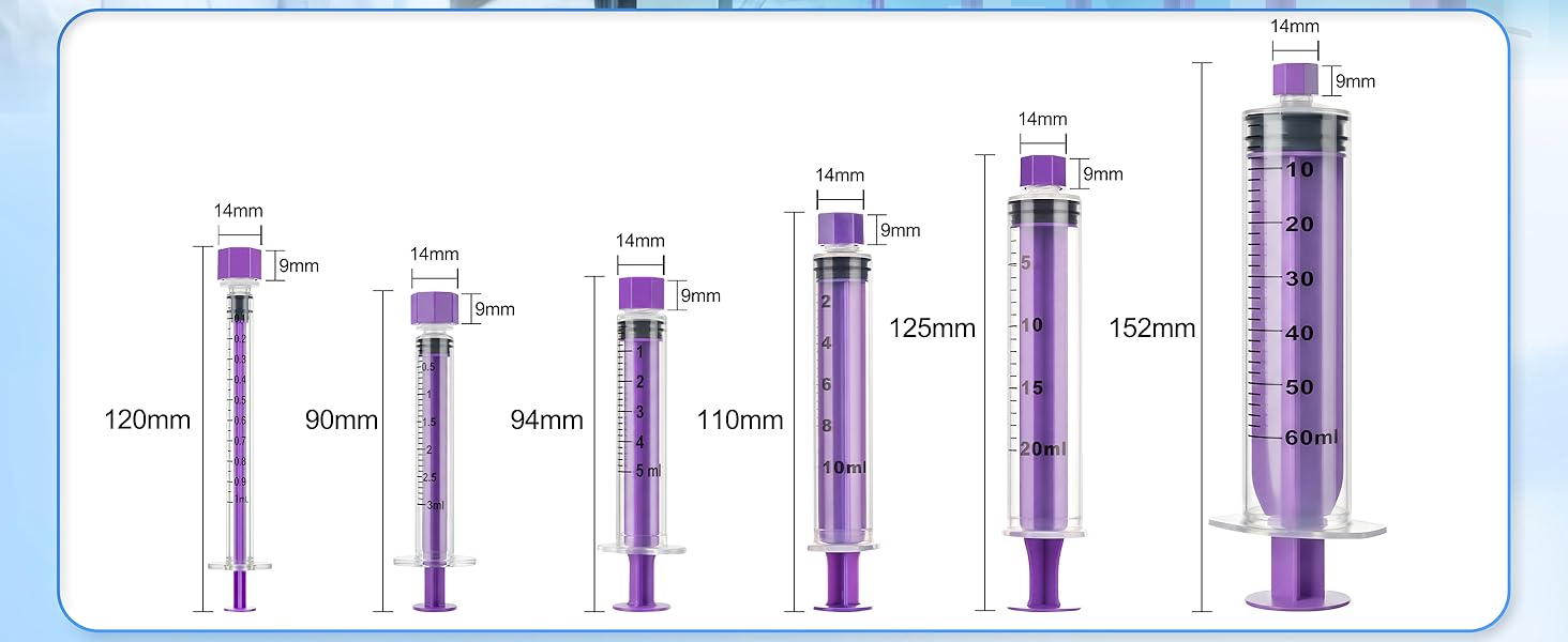 - Standard connector design, each 60cc purple syringe ensures a tight connection with connector