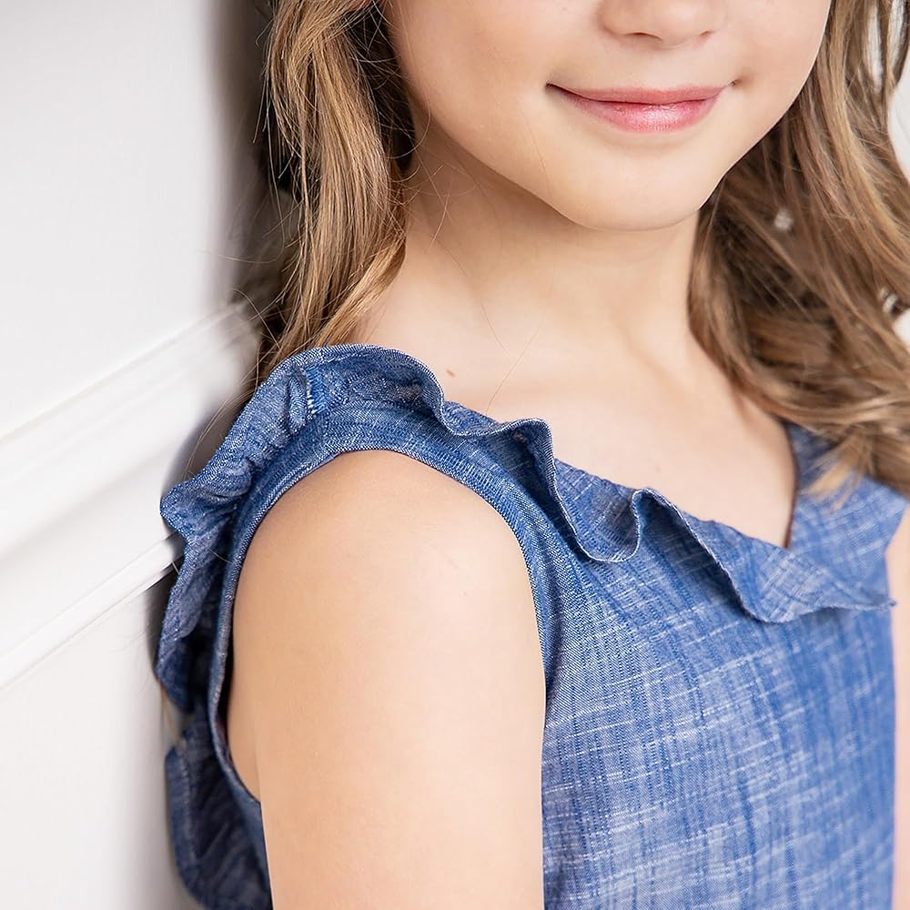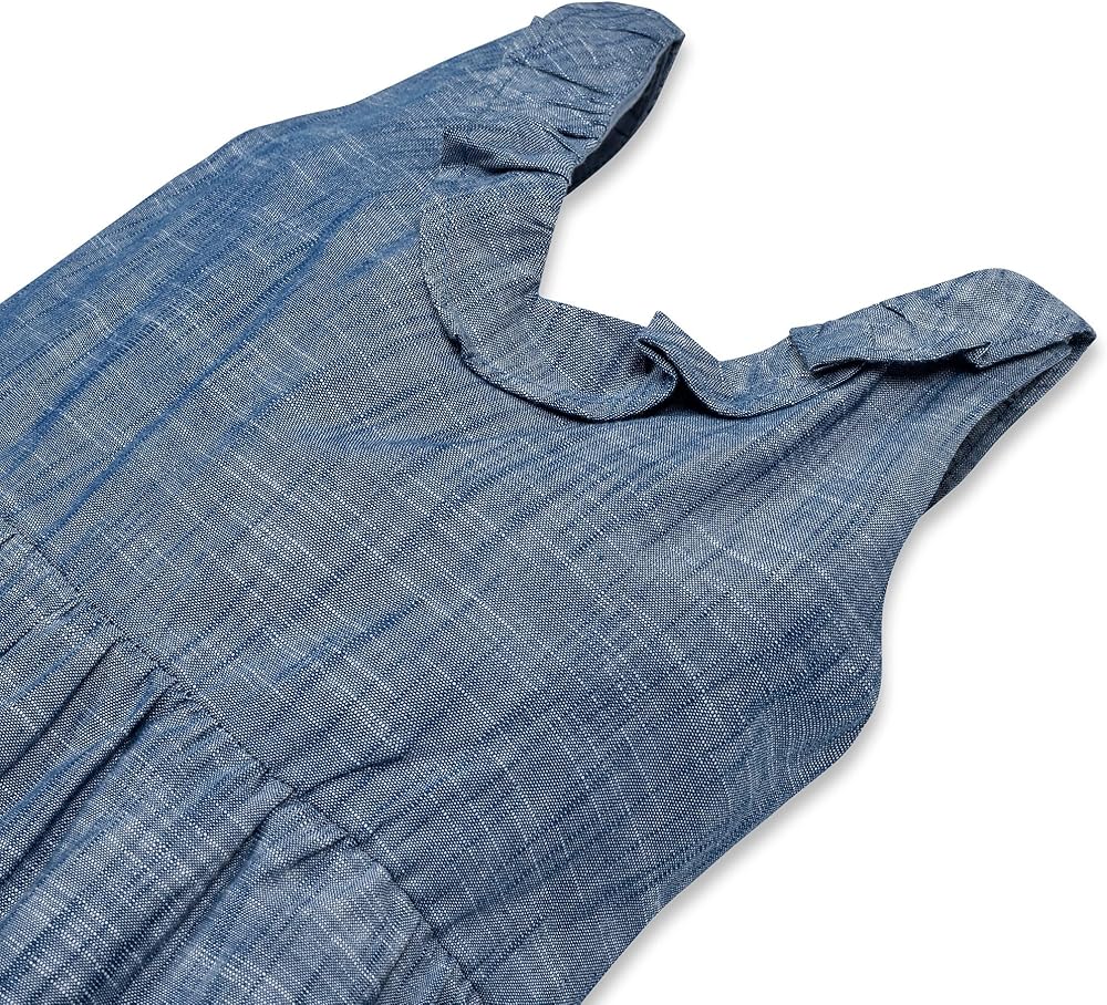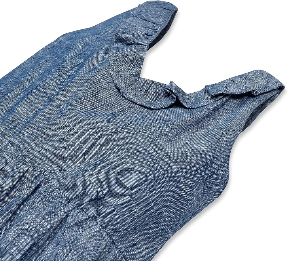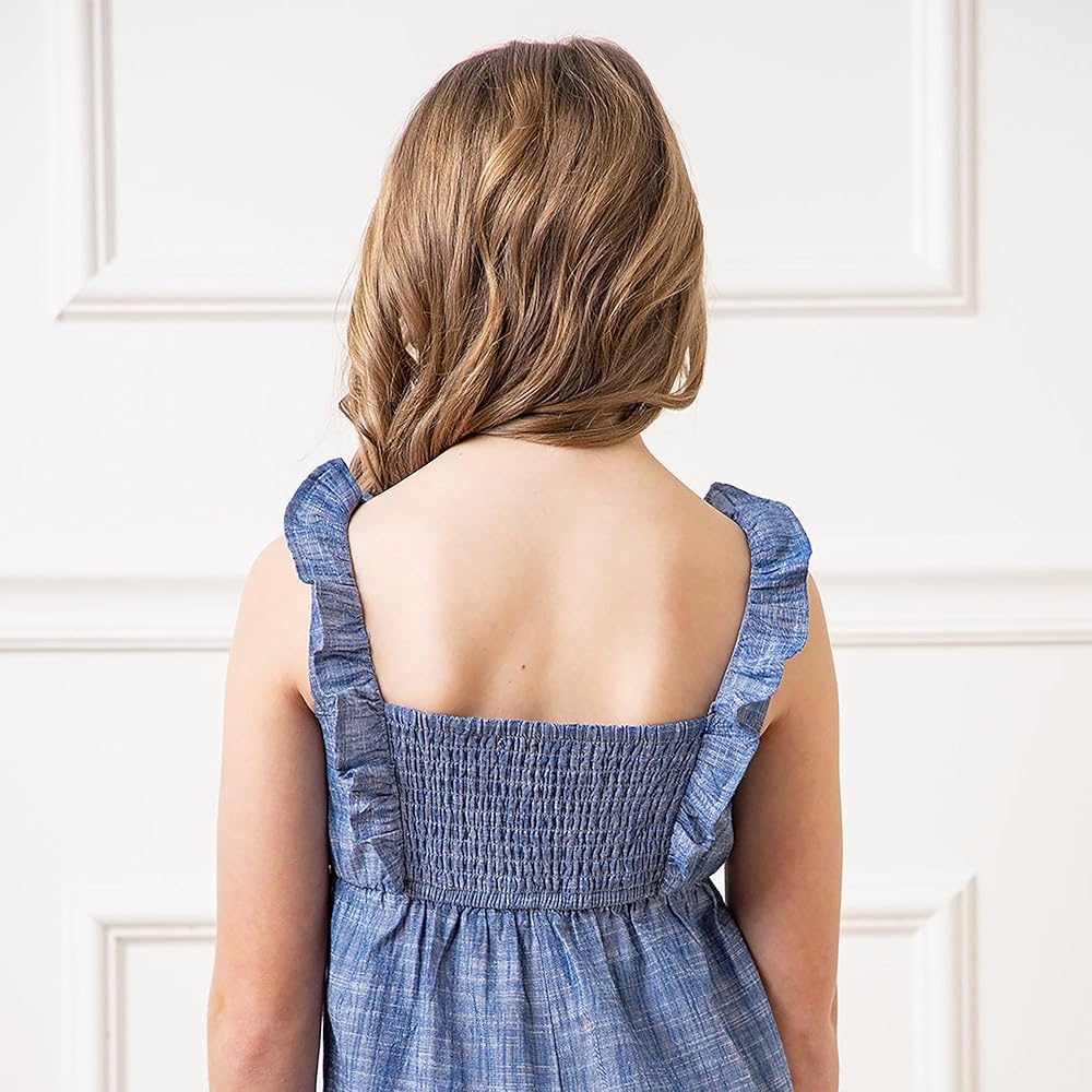 Elastic in the back bodice and button closure straps for a comfy, adjustable fit. Machine washable.