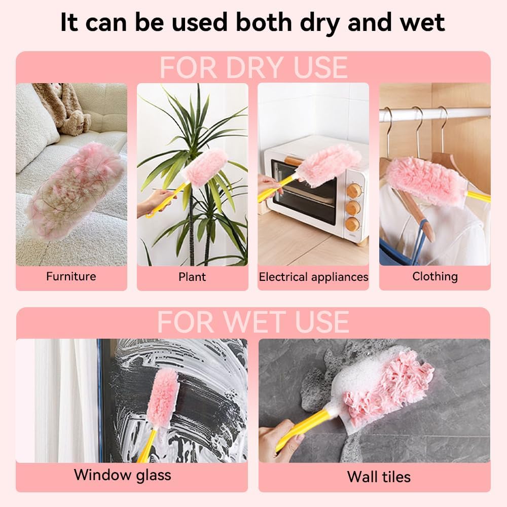 Easy to use: Just insert the handle into the duster and you can conquer the dust! The universal design is compatible with other brand handles, is easy to assemble, is very sturdy and does not fall off easily, giving you the freedom to switch easily between brands. Just follow these four simple steps: connect the handle, fluff the duster, insert the handle into the head, and extend the pole—then you're ready to dust with ease