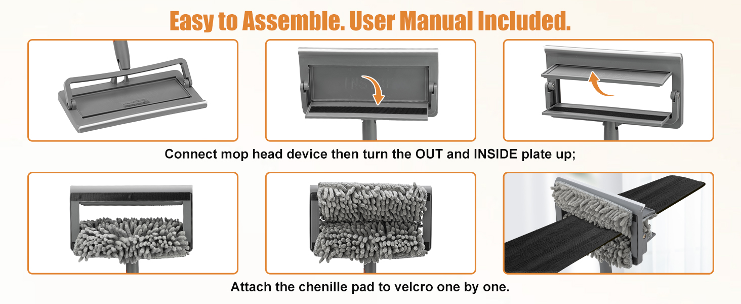 【Squeegee with Long Handle for Windows】The all-purpose squeegee attached to the two cleaning heads will not leave smudges and won't scratch your windows or floor. It's perfect for any flat surface—including vinyl, laminate, hardwood, and tile. The 4-in-1 cleaning tools are a must-have for every household—versatile, safe, and convenient household supplies for home cleaning