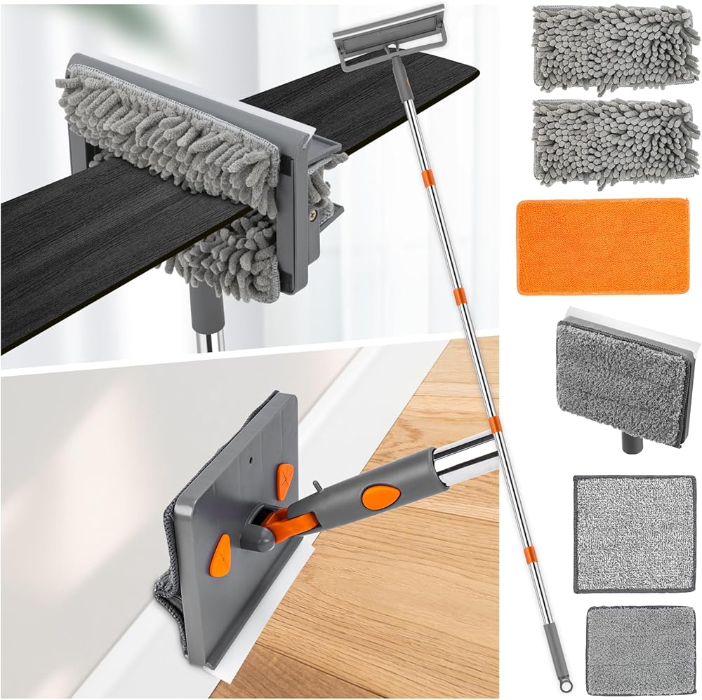 【Wall Cleaning Mop for Walls with Long Handle】Gently remove smudges and stains from walls without causing damage. The microfiber mop is perfect for washable wallpaper, woodwork, doors, and wall coverings—making routine cleaning quick and simple