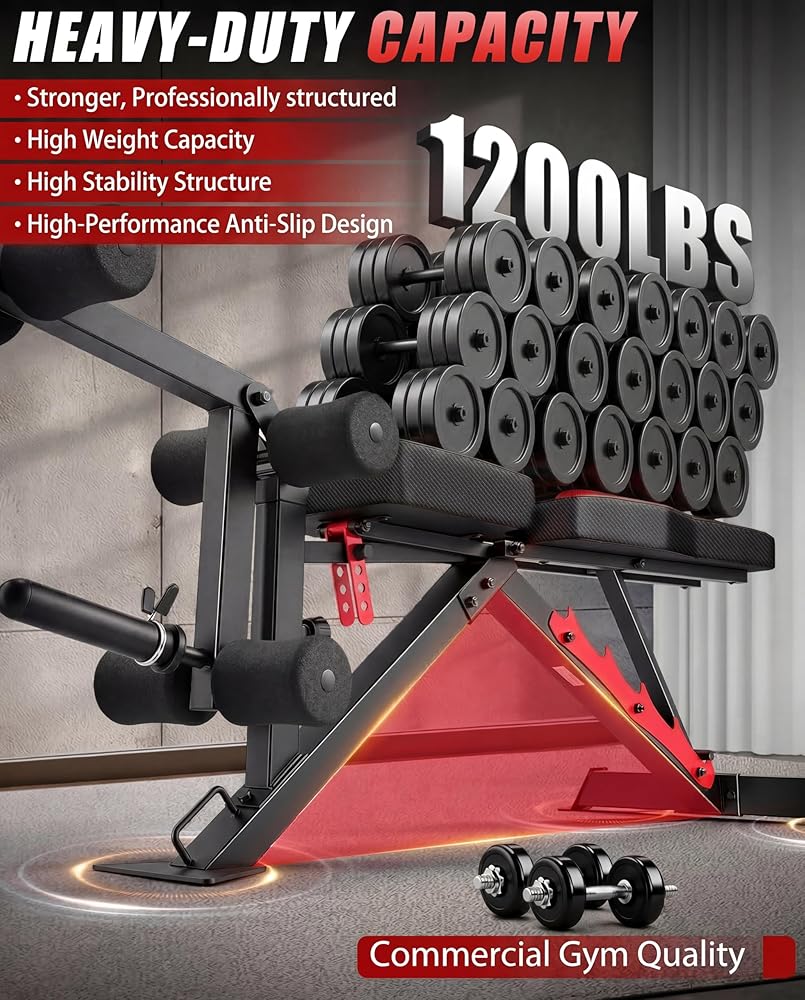 • 【Heavy Duty Commercial Gym Quality】 This workout bench features a frame constructed with 1.5MM newly upgraded commercial thickness steel, enabling the strength training bench to achieve a 1200 lbs weight capacity and provide excellent longevity during high intensity workouts.