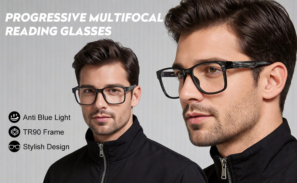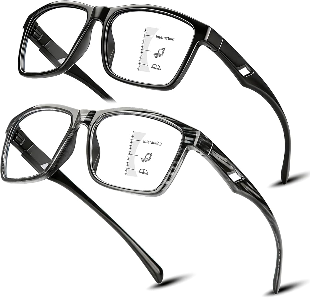 [3-IN-1 Multi-Focus Readers]: Stop the glasses shuffle! SKYOAK progressive workspace lenses feature seamless zones for social interaction, 3ft screen viewing, and close-up reading. Integrated blue light blocking technology eliminates digital eye strain and fatigue. Enjoy crystal-clear vision and ultimate eyewear for all-day office comfort