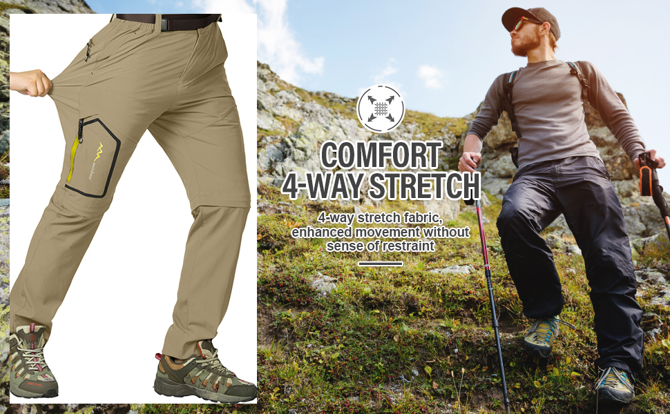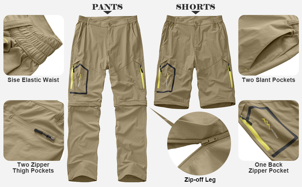 Convertible Pants Men: Zip off hiking pants for men make for an easy change from pants to shorts, suitable in the hot and cool seasons of spring summer and autumn. 2-in-1 mens hiking pants convertible quick dry pants can reduce your travel weight.