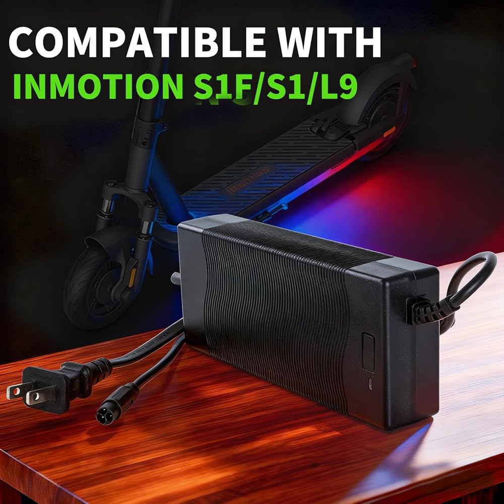 1.Exclusive INMOTION Compatibility: Featuring a 3-prong connector (0.33-inch), this charger is engineered solely for seamless integration with INMOTION L9/S1/S1F models, ensuring perfect fit and reliable performance without compatibility issues.