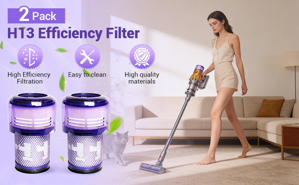 【PREMIUM FILTRATION PERFORMANCE】Our V12 HEPA filter significantly enhances vacuum suction and improves dust removal, effectively eliminating 99.9% of dust and dirt in your home. By enhancing air quality, it helps create a truly clean living space.
