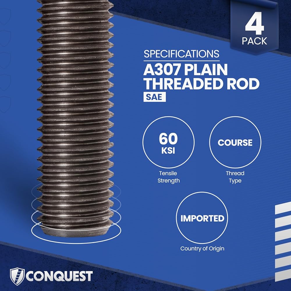 MATERIAL - A307 low strength (60 KSI), versatile carbon steel coarse fully threaded rod manufactured to the highest quality industry standards.