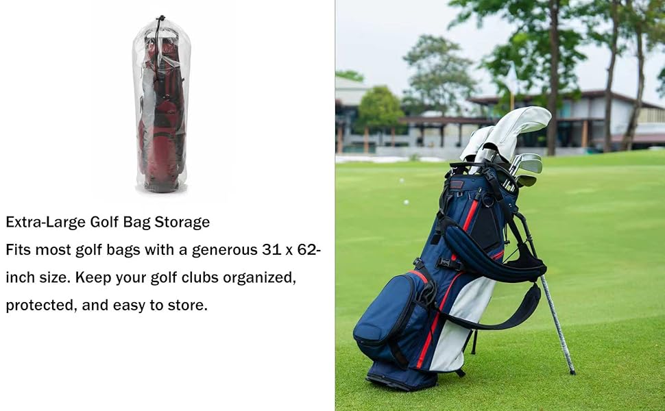 1. Large Capacity Golf Bag Cover Keep your golf bag organized and protected with this extra-large golf bag cover. Measuring 31 x 62 inches, it fits most golf bags and offers ample storage space for easy handling and long-term protection.