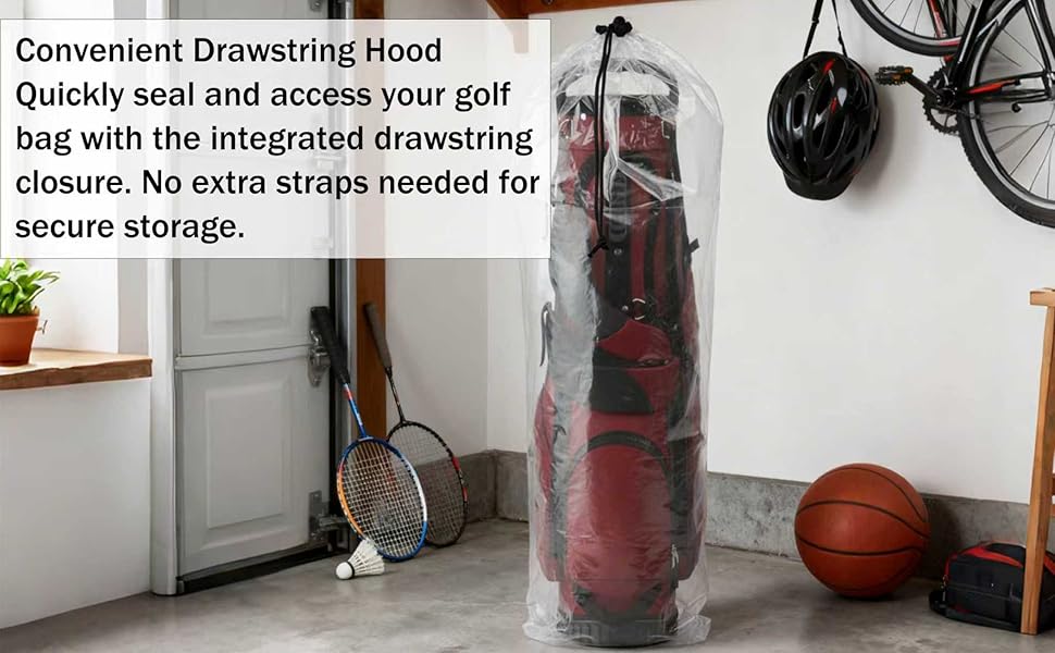 5. Multi-Purpose & Reusable Storage Bag Perfect not only for golf bag storage but also for luggage, rugs, pillows, and clothes. These large clear drawstring bags are reusable, keeping your belongings organized and protected for future use.