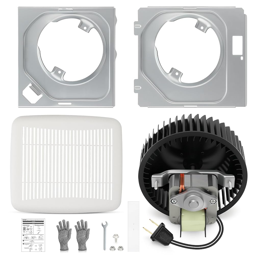 The BKR60 bath exhaust fan kit restores ventilation quickly and reliably. Designed for bathroom exhaust fan motor replacement, it fits many housings from popular models. Each set includes a high-quality motor assembly, blower wheel, motor plates, optional scroll band, and a bathroom vent cover with springs for a full, ready-to-install solution.
