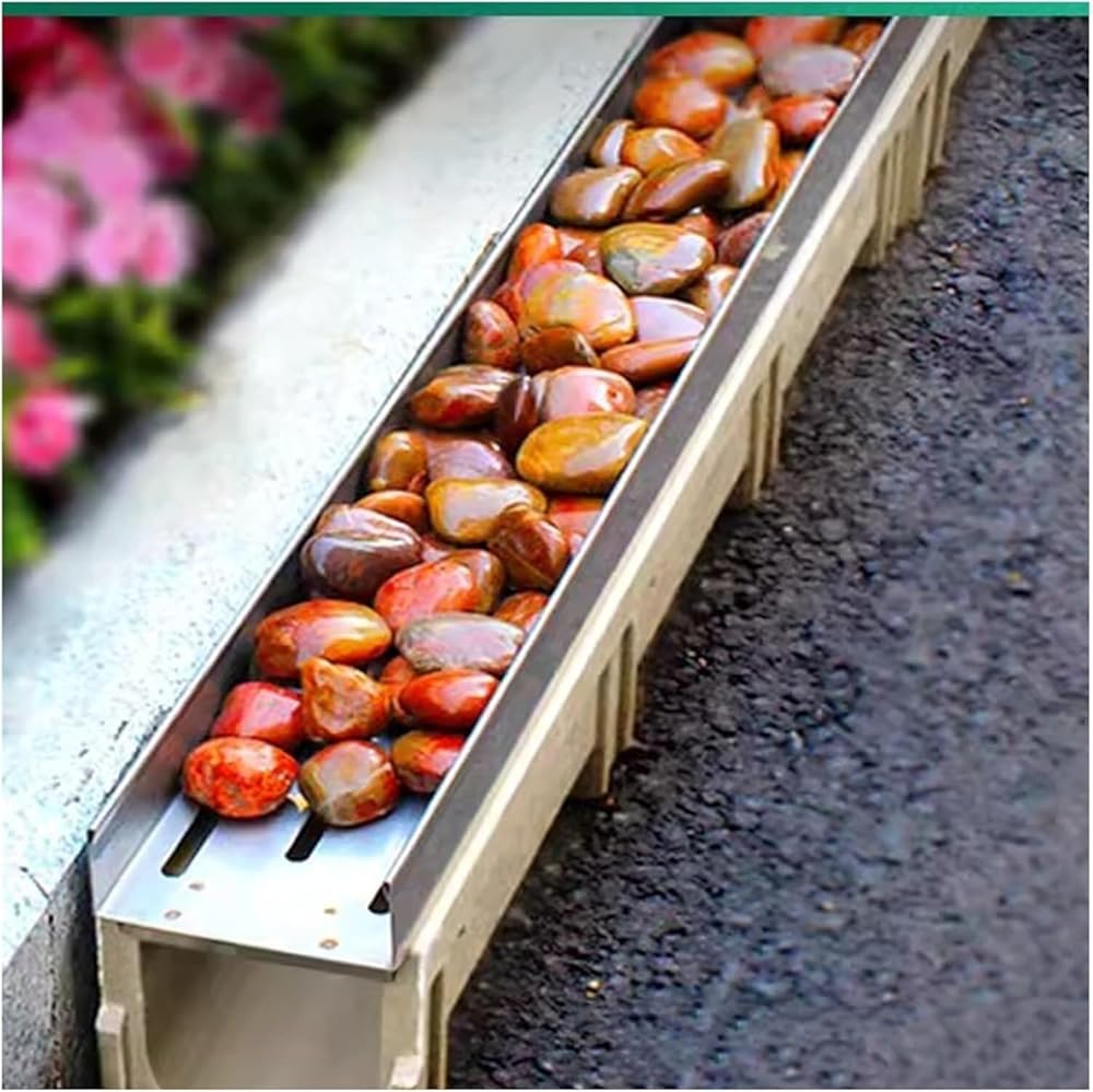 • EASY TO INSTALL: Firstly, you need to dig a channel in the soil or concrete, then smear the soil, put in the channel, cover the grille, and you are done. Note: The width of the trough should be more than 4cm wider than the width of the channel.