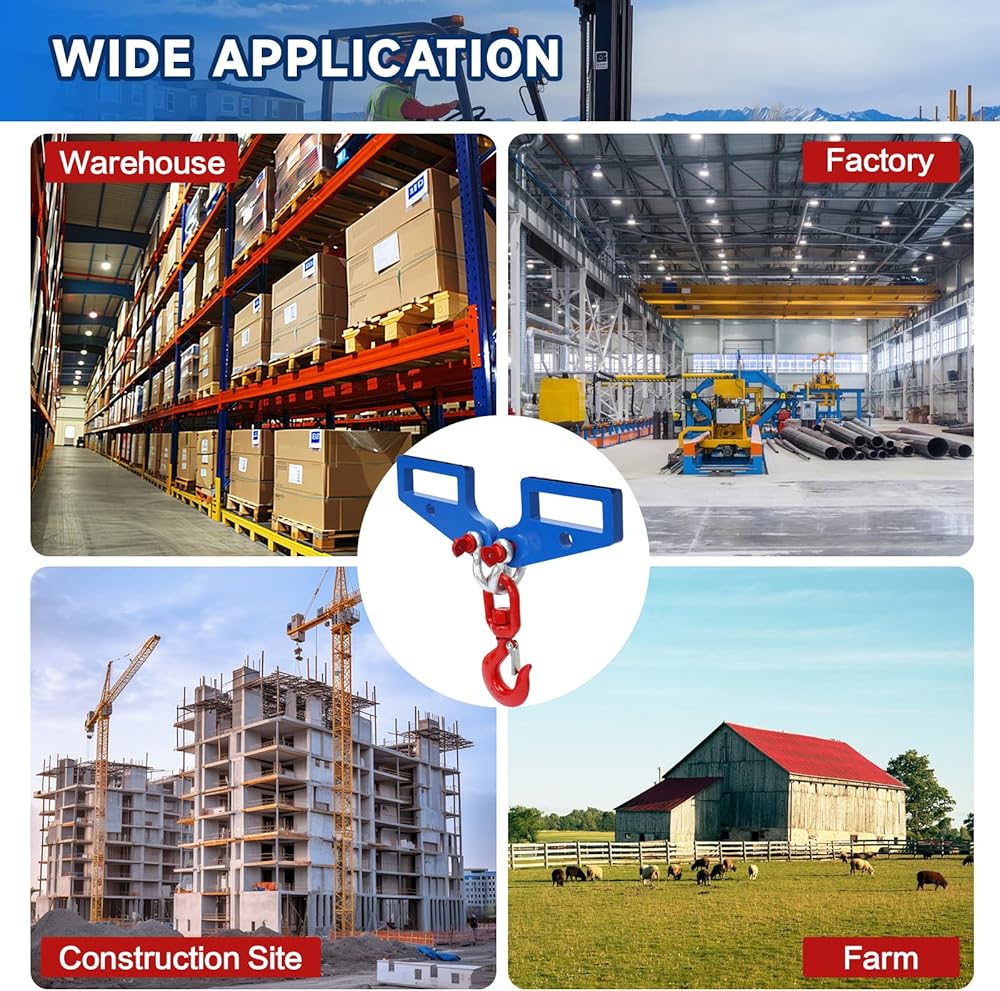 Wide Application:Fork Mounted Lifting Hook can be widely used in various places for transporting heavy objects, such as warehouses, factories, industrial sites, construction sites, farms, ranches, etc