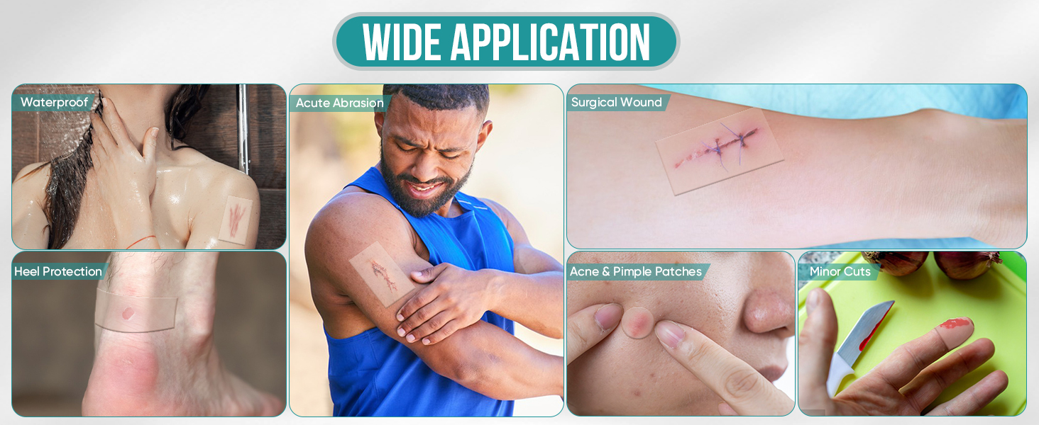 Transparent and Flexible: The hydrocolloid bandages are soft and breathable, making them easier to adhere to complex body parts such as elbows, knees, and ankles, preventing them from falling off during movement. Semi-transparent for better visibility of the wound.