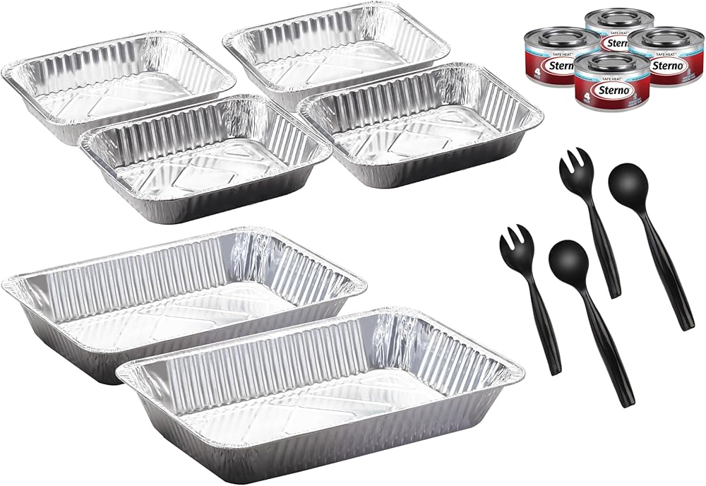 Complete Refill Kit: This 12-piece set includes 4 full-size food pans, 2 full-size water pans, 4 cans of 4-hour wick fuel, and essential serving utensils (2 forks and 2 spoons), ensuring you have all necessary components to refresh your buffet presentation.