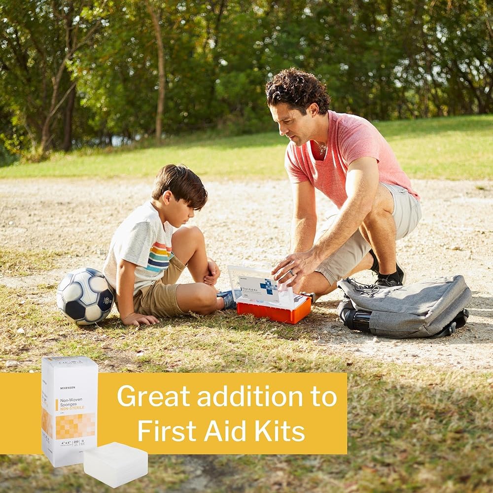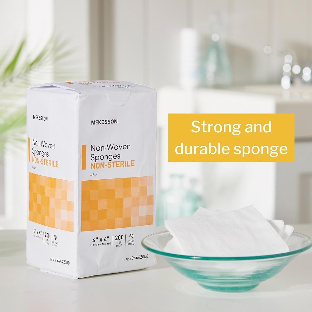 These 4 x 4 nonwoven sponges can be used for several applications at home and in health care facilities. They are suitable for cleaning and wounds, and for prepping and scrubbing applications. These non-woven sponges are non-sterile. They are designed to resist fraying and produce less residual lint, for cleaner and neater usage. They are made of a polyester and rayon blend, giving the wearer a soft and comfortable feel against the skin. The 4-ply construction of these sponges allows them to absorb lots of blood and other fluids. This keeps the area around a wound clean and comfortable. In fact, they are more absorbent than traditional woven gauze. They are intended for single-use applications.