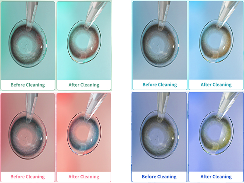 Advanced 360° Ultrasonic Cleaning - Utilizes high-frequency vibrations to create microscopic bubbles that gently remove 99.9% of protein deposits, dust, and bacteria from lens surfaces and edges, ensuring a thorough clean for both soft and colored contact lenses