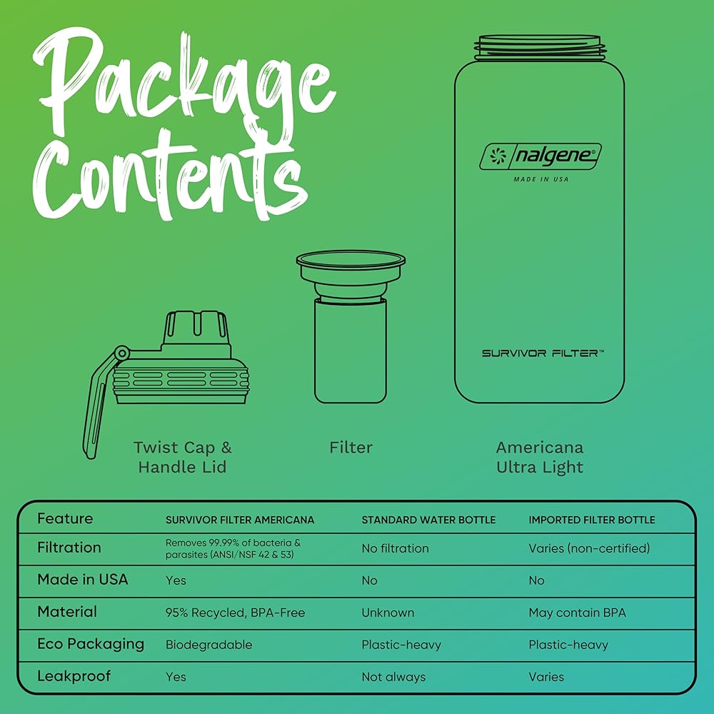 MADE IN USA - TRUSTED DAILY FILTRATION Proudly made in the USA and independently lab tested. The Survivor Filter Americana Ultra Light is designed for reliable everyday, travel, and outdoor use, giving you confidence in the water you drink wherever you go