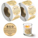 1000Pcs Brown Candle Warning Labels - 2 Rolls Kraft Paper Stickers, Essential Wax Melt Warning Labels and Candle Labels for Candle Making for Your Candle Making Supplies