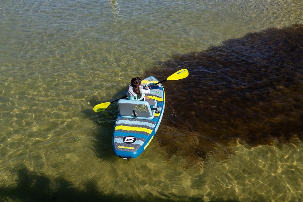 BOTE 8' FT Flow Rider Aero Inflatable Stand Up Paddle Board Hybrid Kayak Kit Includes Adjustable Aero SUP seat Adaptable Kayak iSUP Packable Paddle iSUP Travel Bag Blow Up Pump
