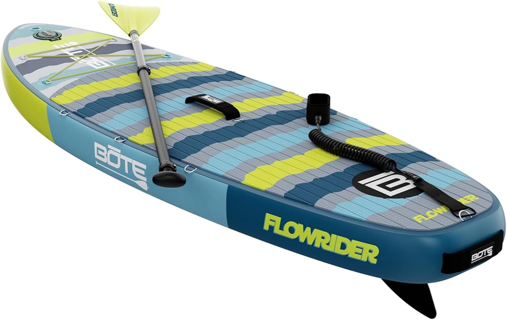 Complete Kids Paddle Board Kit – Travel Ready: Includes a coiled leash, 10″ removable center fin, hand pump, repair kit, and backpack travel bag. Compact, portable, and easy to store, the FlowRider is the perfect kids paddle board set for lakes, calm rivers, and family outings.