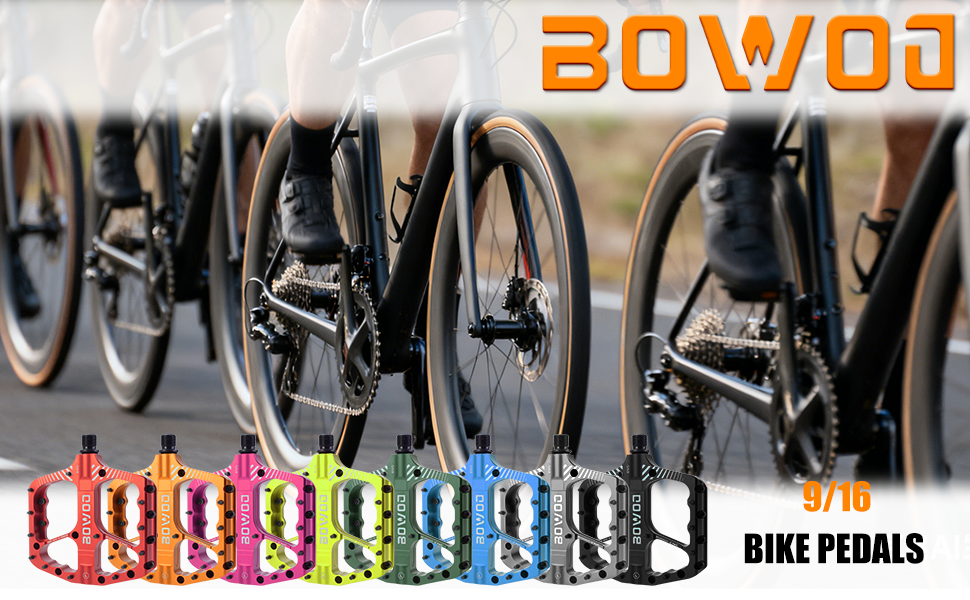 NICE PACKING: Flat BMX pedals / pedales para bicicleta packed in a BOWOD color box, could be a good choice to present cycling lovers as gift. 9/16" Cr-Mo Spindle/Axle fits most bikes: Hybrid, Old School, Commuter, Dirt Jumper, Folding Bike, Touring, Track Bike, Unicycle, Urban, Clipless gravel pedals Road bike pedals replacement.