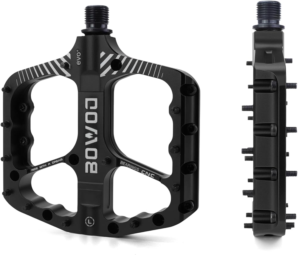 WIDE TREAD & GREAT GRIPPY: wide mountain bike pedals fit most shoes. Non-skip bicycle pedals w 9pcs replaceable & adjustable Pins per side, can grip shoes very securely.