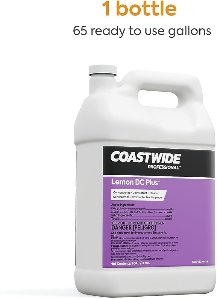 Coastwide Professional DC Plus Disinfectant Cleaner delivers powerful cleaning with a refreshing lemon scent. Clean working spaces quickly and efficiently with this disinfectant cleaner. The reliable formula disinfects against bacteria such as TB and viruses such as HIV, making it ideal for spaces that need to be completely sanitized on a regular basis. This Coastwide Professional disinfectant cleaner dilutes at only 2 ounces per gallon for most applications, making it a great choice for businesses that want to stock up.