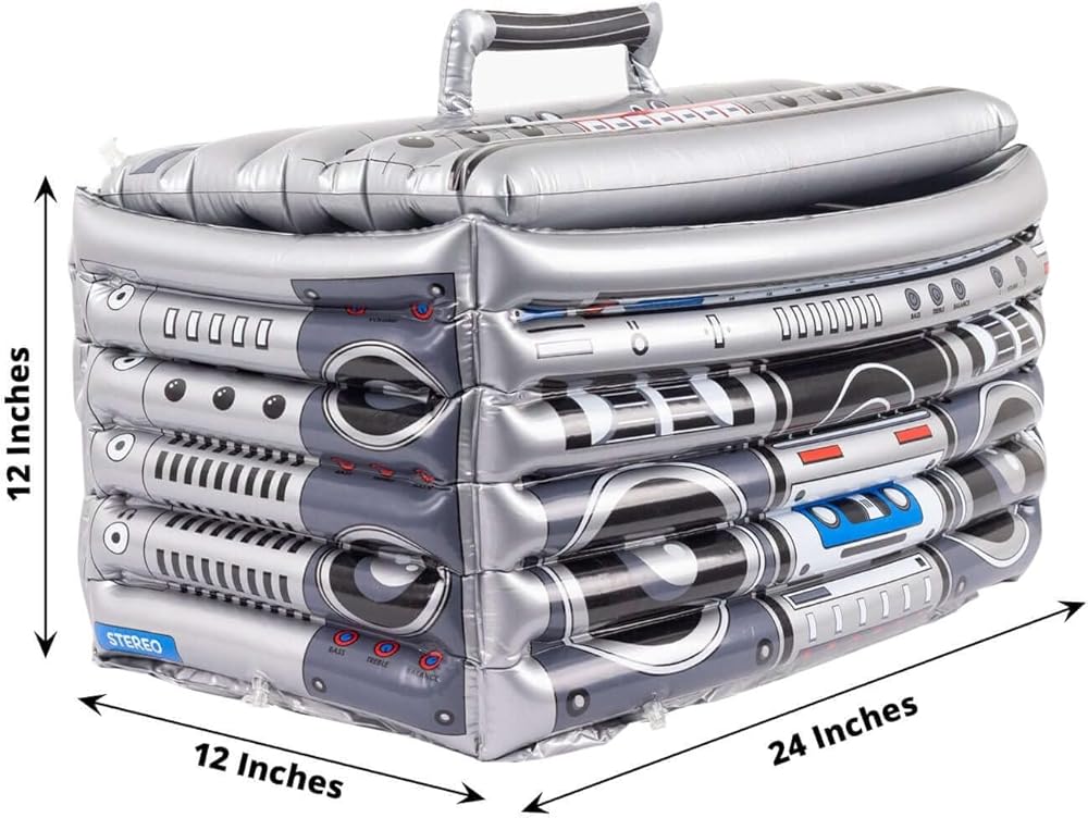 This inflatable drinks cooler is a great way to celebrate your next indoor or outdoor gathering as it provides both functionality and style. Shaped like a boom box, this multipurpose inflatable cooler will not only keep your soda, wine, beer or any party beverages chilled but will also make a perfect decorative accent to bring life to your BBQ, pool parties, summer get-togethers, birthdays, or even to a day in the backyard. No more running back and forth to the fridge! Simply blow it up, put some ice and display and keep your party drinks cool. Easily deflate, store and use it again for your next fun celebration!