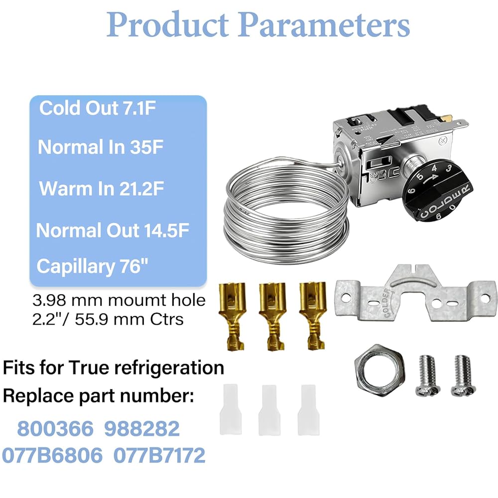 High Precision Temperature Control: 800366 temp control uses high-quality temperature sensing probes and highly sensitive valve cores to sense temperature in real time and accurately maintain the set refrigeration/freezing range. Precise temperature regulation helps maintain stable internal conditions, preserving the quality and freshness of stored food products.