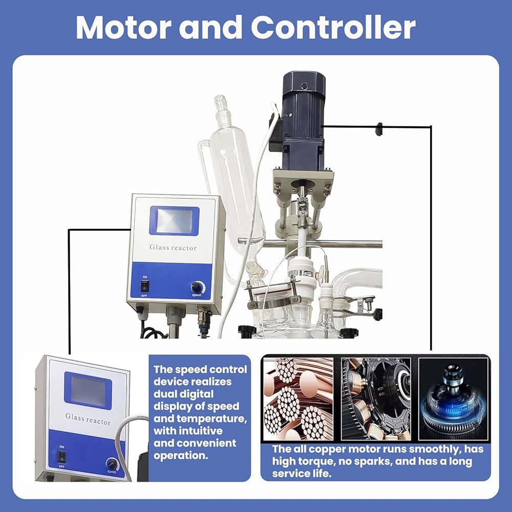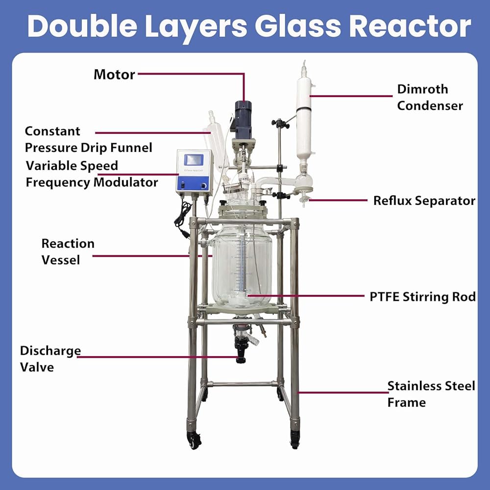 【High Quality Materials】 - The jacket reactor uses borosilicate glass, which has excellent physical and chemical properties. The overall structure adopts stainless steel frame, which is compact and sturdy. Equipped with wheels and brake for easy movement.