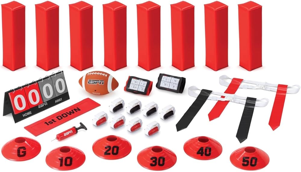 Step up to the plate with the ESPN Baseball Stadium Experience, where you can create an authentic baseball training field in your own backyard! Whether you're practicing at home or at the park, these baseball accessories provide everything you need to develop fundamental techniques such as hitting, pitching, fielding, and base-running. Includes 8 balls, 2 bats, 2 foul poles with flags, 2 foul lines with ground stakes, base set, scoreboard, 20 outfield cones, strike zone pitching target, and on-deck circle. Take your game to the next level while you enjoy the timeless excitement of baseball with teammates, family, and friends.