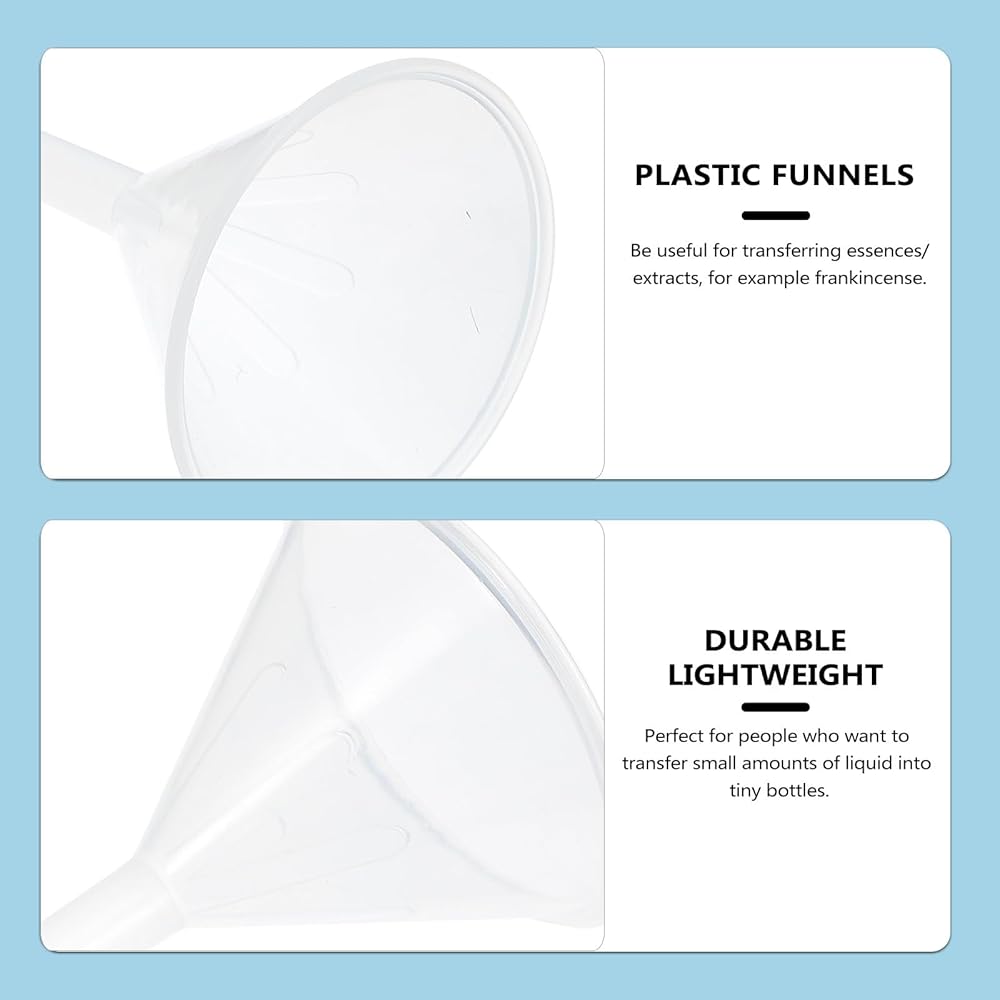 - Be useful for transferring essences/extracts, for example frankincense funnel clear plastic.