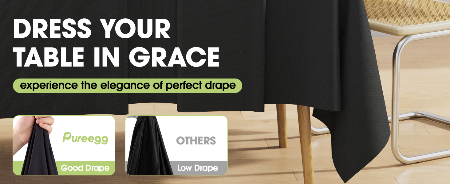 VARIOUS CHOICE: The Pureegg tablecloth for rectangular tables is available in a 60''×84'' size, suitable for 5ft tables. What's more, this tablecloth comes in various colors to match different decoration styles. You can freely choose the black tablecloth or other colors according to your preference.
