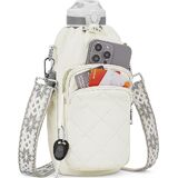 Functional Storage & Lightweight - This water bottle purse measures 11*4.5*4.5 inches and weighs 0.6 lbs. This is a lightweight crossbody water bottle bag and has 4 pockets, 2 front zipper pockets: a phone pocket fits up to 6.9" phones and an accessory pocket for keys, wallet, sunglasses; 2 side pockets can hold cosmetics headphones and other small items. Built-in key hook lets you find keys fast-everything stays neat and hands-free