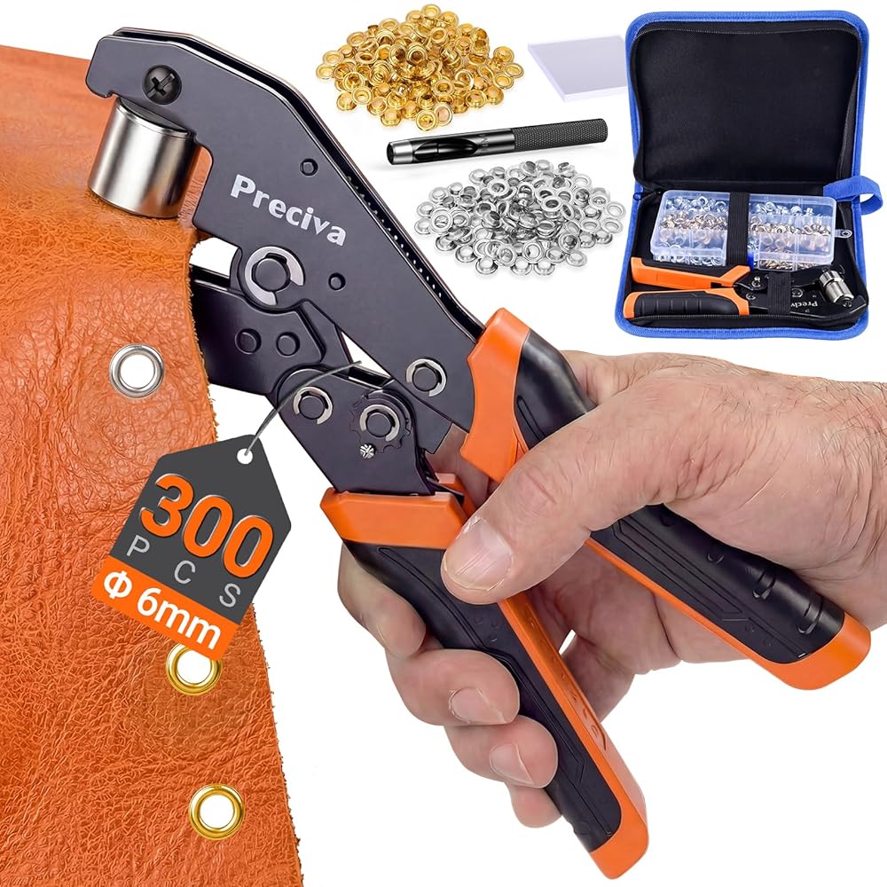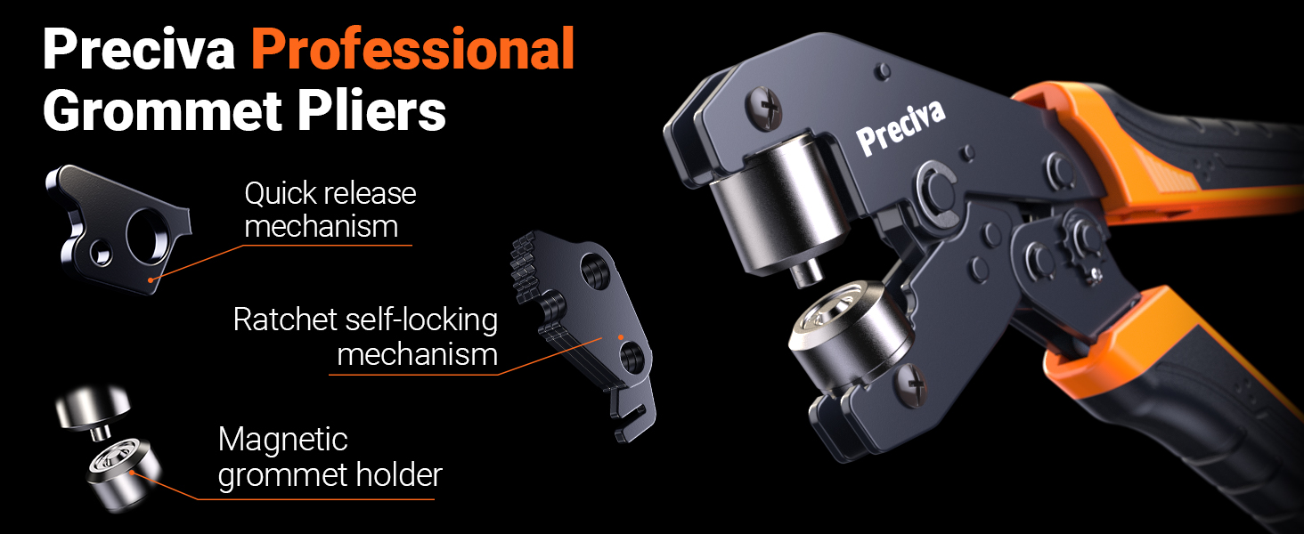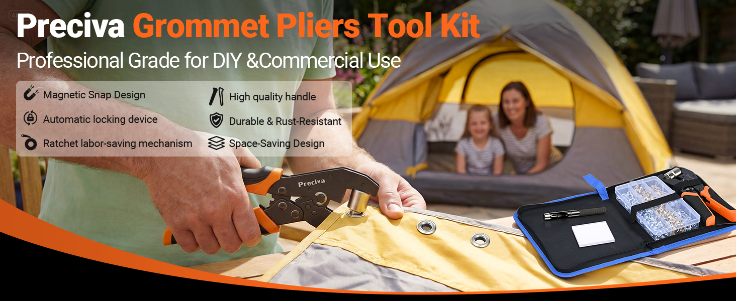 【Upgrade Grommet Pliers】Compared to older models on the market, the new handle design features adopt an ergonomic shape with ridges for effective slip resistance.The built-in ratchet system reduces the force needed to set grommets, making the process easy on your hands. It also self-locks, ensuring a perfectly set grommet every time.
