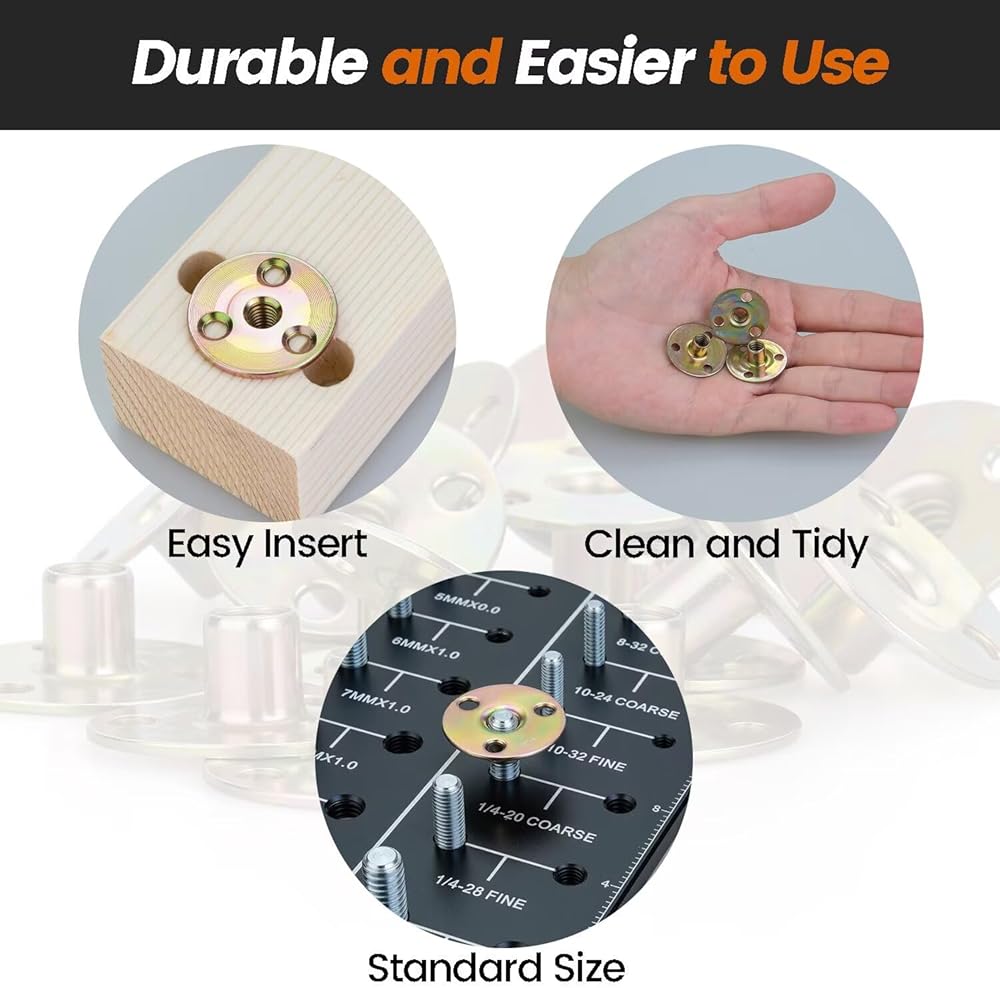 Problem Solved: Customers like you shared how prong-type nuts "work their way out over time." Our flange inserts bite deep into wood, ensuring a rock-solid hold.