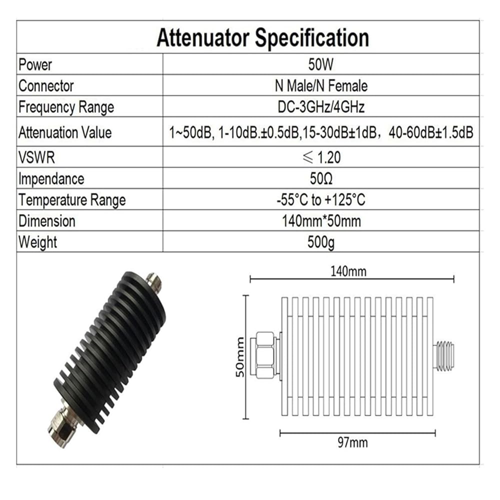 Connector-Fixed 50W attenuator coaxial DC-3GHz(20db,4G)
