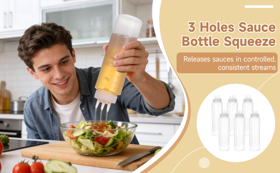 Translucent Bottle Design: Transparent white body allows instant visual checks of sauce levels; helps avoid unexpected empty bottles during meal prep; easy to refill and monitor; practical for organizing multiple flavors or identifying sauces quickly