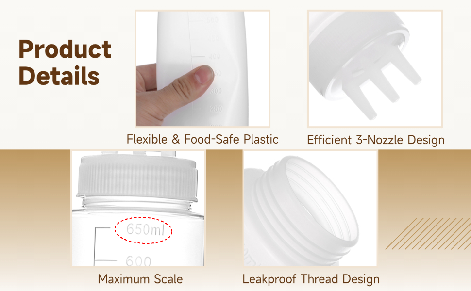Flexible & Food-Safe Plastic: Made from quality plastic suitable for everyday cooking; lightweight material withstands regular squeezing without deforming; safe for storing common condiments such as sauces and dressings