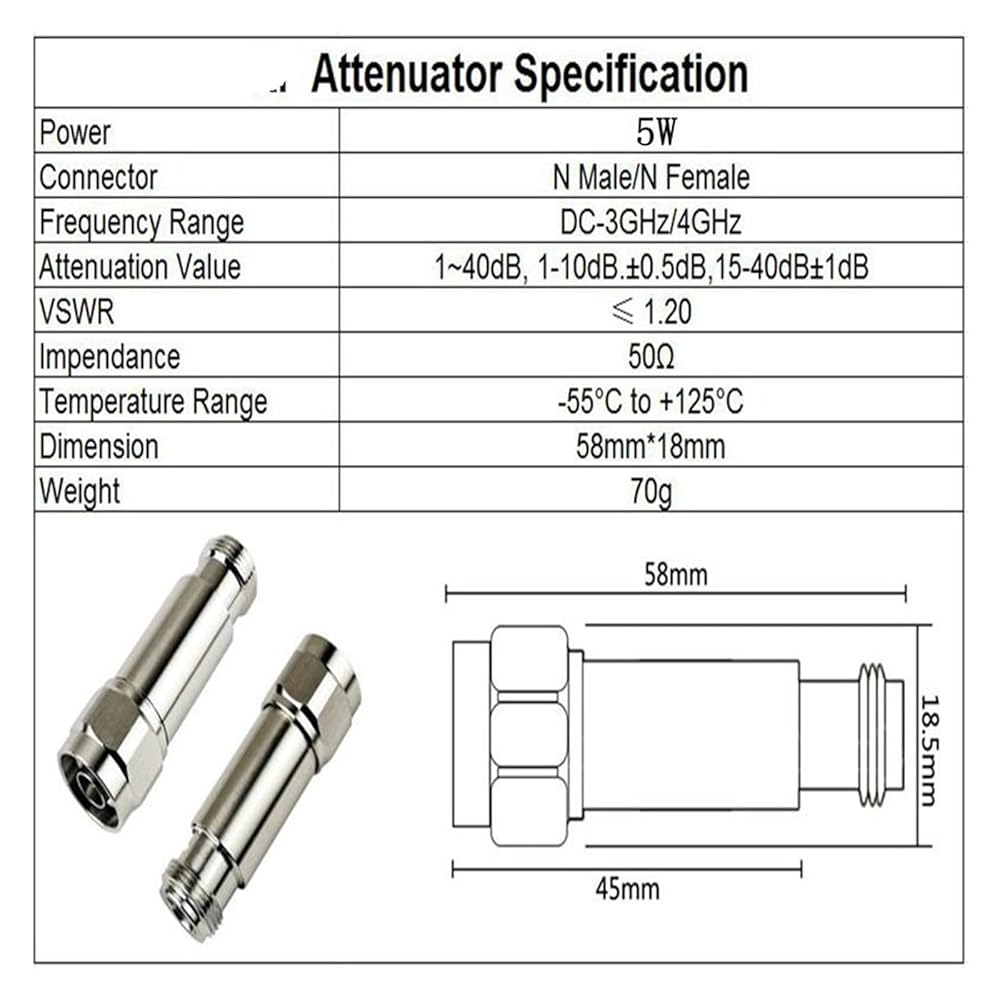 5W N-Type coaxial Fixed attenuator DC to 4GHz, 50 ohms(20db,3G)