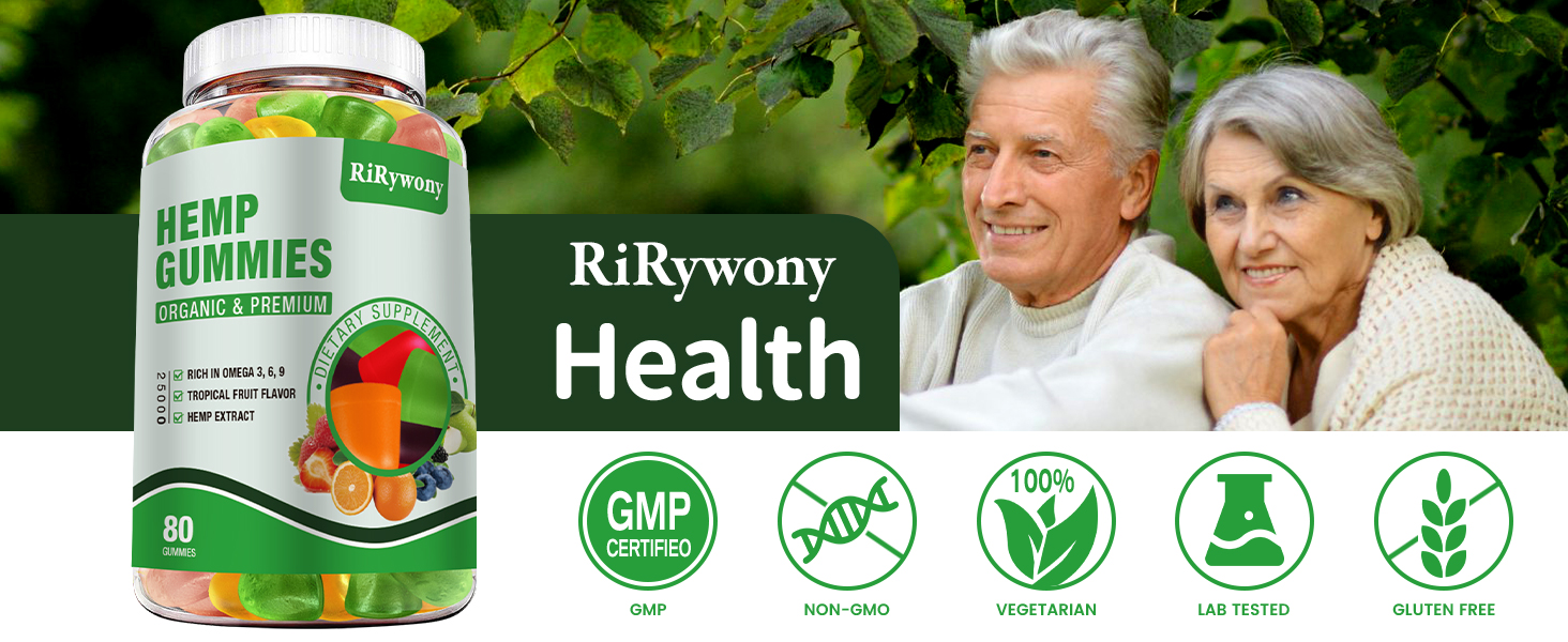 UPGRADED FORMULA - Upgrade RiRywony Health Hemp Gummies Formula: Fatty acids OMEGA 3-6-9. Extra vitamin C, E supplements to improve the body's nutritional needs. Promote overall health in an efficient manner,make you full of energy every day.