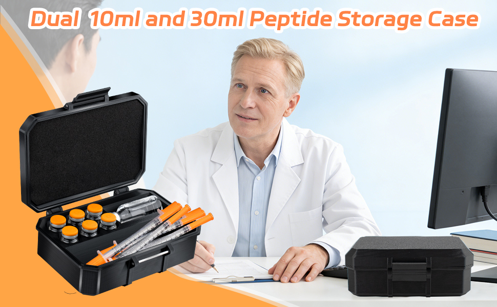 Large Capacity: YSSPPOY peptide storage case has three compartments: one that holds six 10 ml vials, one for one 30 ml vials, and another for several syringes and skin prep wipes.