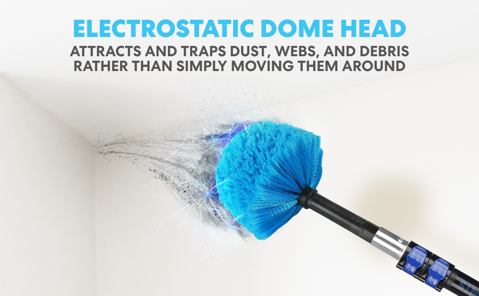 Easy High Reach Cleaning: includes aluminum tselescopic pole, high ceiling fan duster, cobweb duster, microfiber feather duster, window squeegee cleaner,universal joint and wall rack organizer