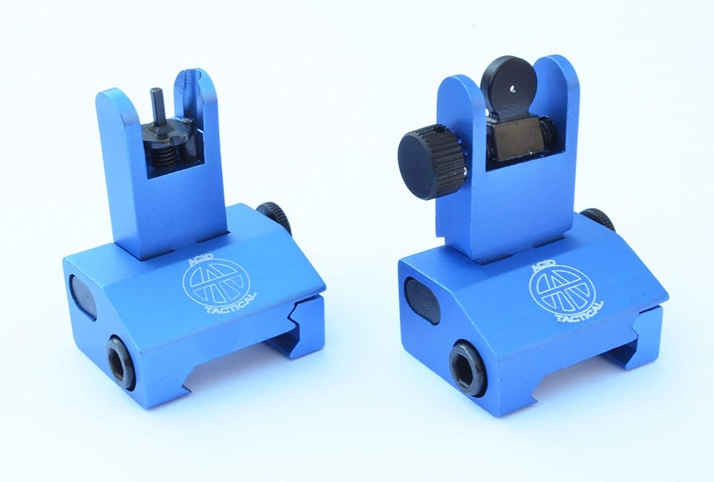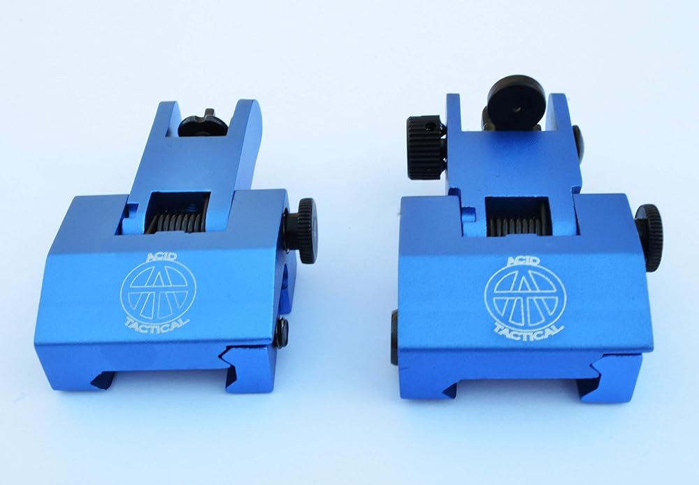 Rifle Back up Iron Sights with Picatinny BUIS 2 Piece Front and Rear Duel Aperture Anodized Blue