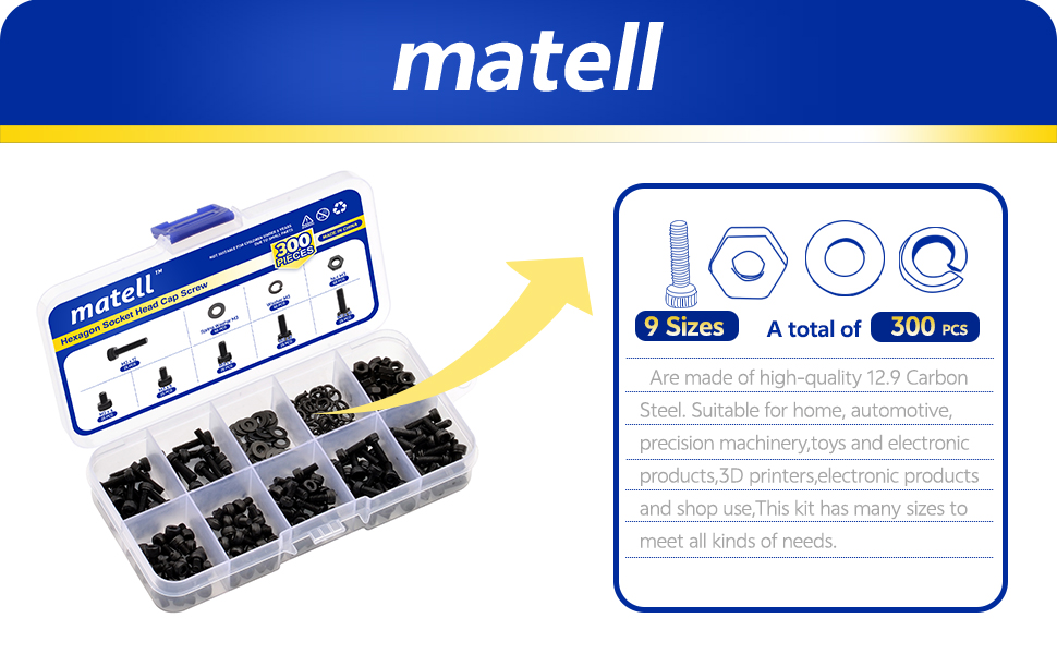 Premium Material:All Hexagon Socket head cap screw kit are made of high-quality 12.9 Carbon Steel, which has the advantages of corrosion resistance, rust prevention, and not easy to break, with a long service life