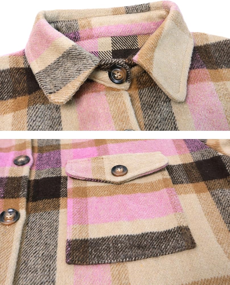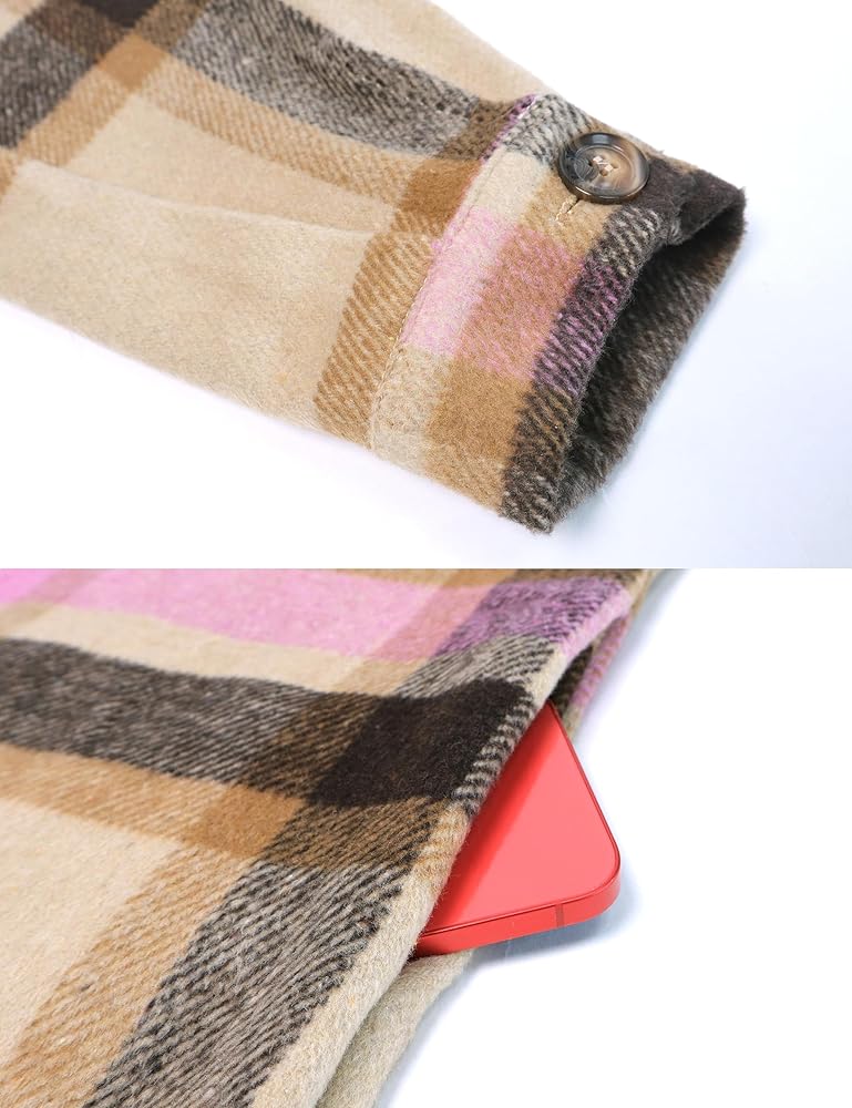 Features: fashion oversized midi shirts brushed checked coat, high quality flannel fabric, keep you warm in cold winter