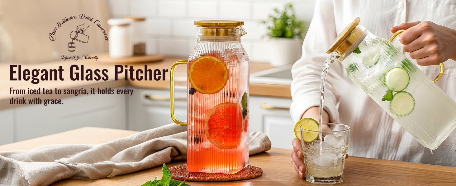 Borosilicate Glass Built to Last: Crafted from premium borosilicate glass, this pitcher excels in extreme temperatures (-4°F to 302°F) without cracking or leaching chemicals—unlike ordinary glass. Its superior clarity enhances your beverages' appearance, while the lightweight yet sturdy design ensures effortless handling. No plastic taste, no stubborn stains. Plus, it's dishwasher-safe for quick and easy cleaning