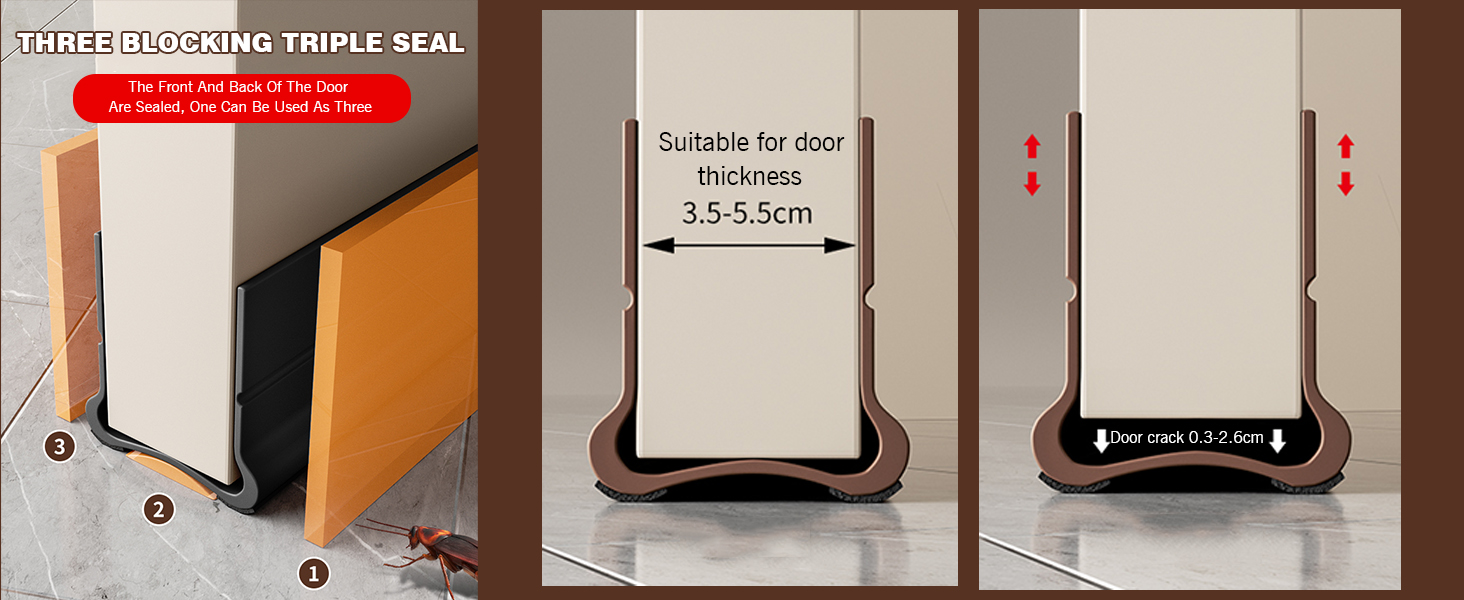 Upgraded Thermal Insulation & Sealing Performance:Double-row cavity insulation + double-version sealing strip, compared with ordinary single-row products on the market, the thermal insulation performance is increased by more than 40%. After installation, the hollow insulation cavity and sealing strip work together to form an airtight protective layer at the bottom of the door, which can not only effectively block the infiltration of hot and cold air, but also has the effect of windproof and dustproof, making the indoor environment more comfortable.